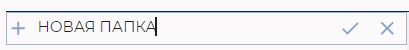 «Клик» мышки на иконке «галочка» создаст новую папку в требуемом месте. «Клик» мышки на иконке «крестик» отменит создание и очистит поле ввода.